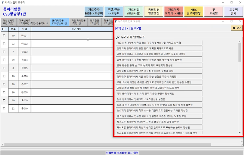 상단의 복사하기 버튼 클릭 시 나이스 입력 도우미로 내용이 복사됩니다.
