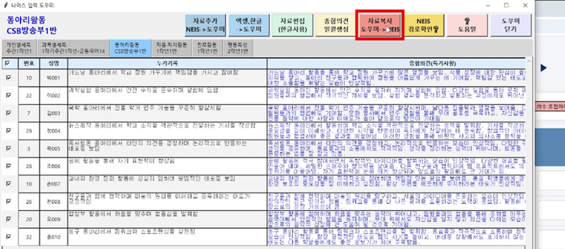 도우미 프로그램에서 NEIS로 자동복사 기능을 이용할 수 있습니다.