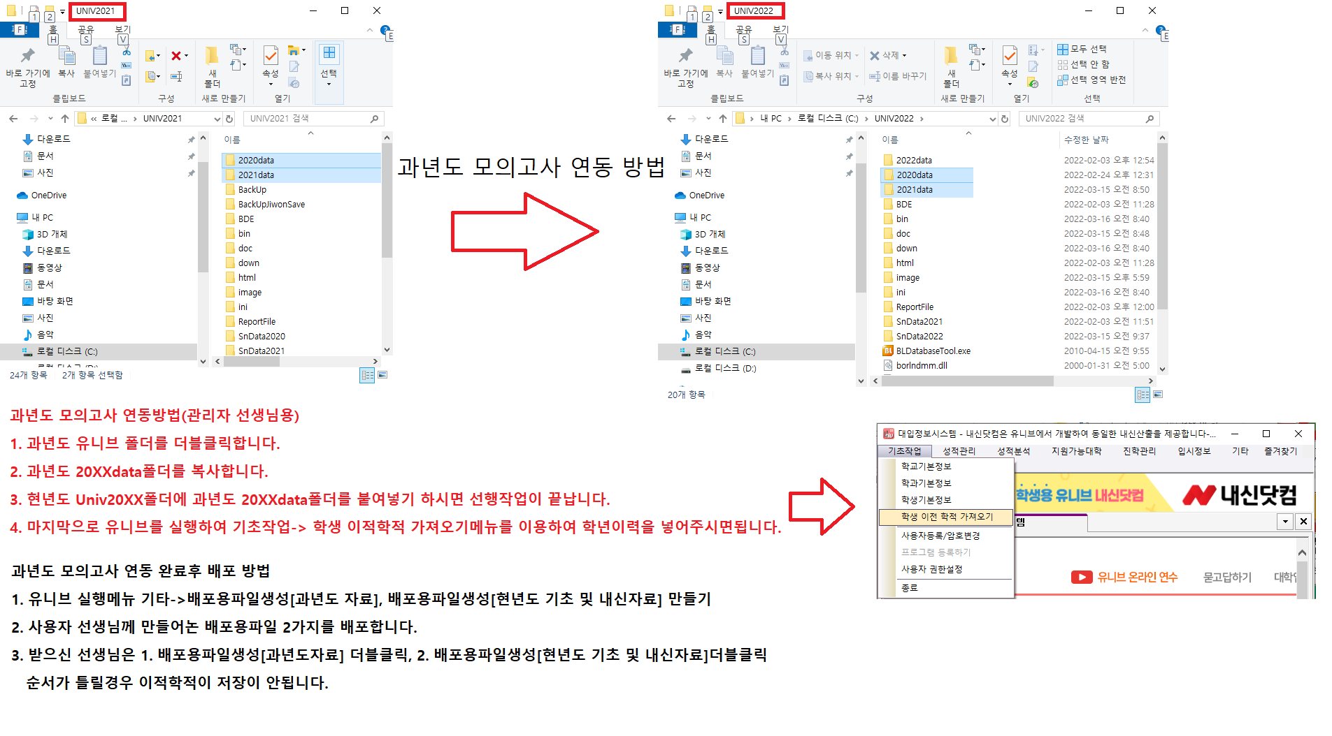 [내 컴퓨터 > C드라이브 > UNIV2024] 폴더에서 2023data, 2024data 폴더 복사.