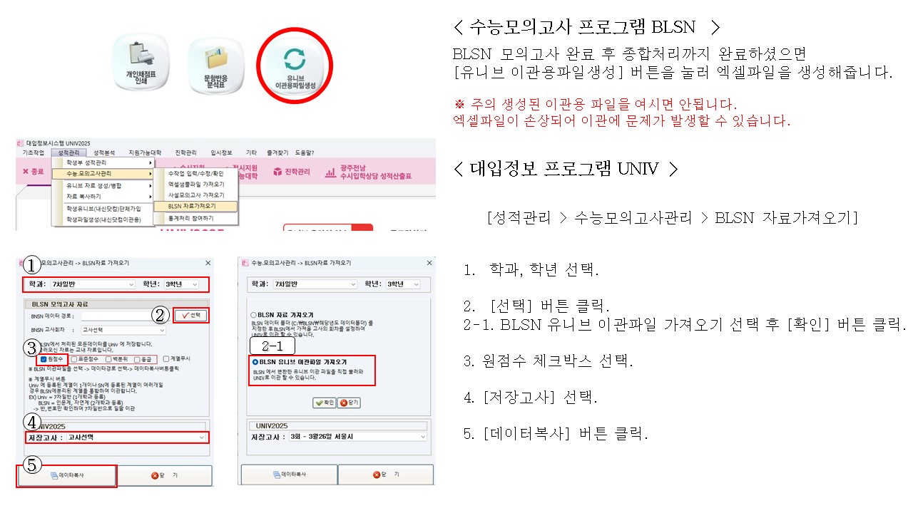[성적관리] ▷ [수능모의고사관리] ▷ [BLSN 자료가져오기]