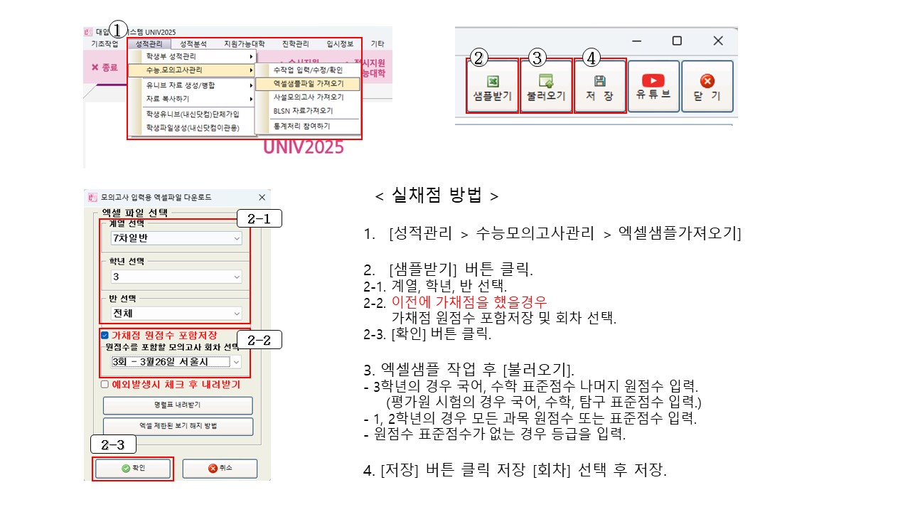 [성적관리 > 수능.모의고사관리 > 엑셀샘플파일 가져오기] 메뉴에서