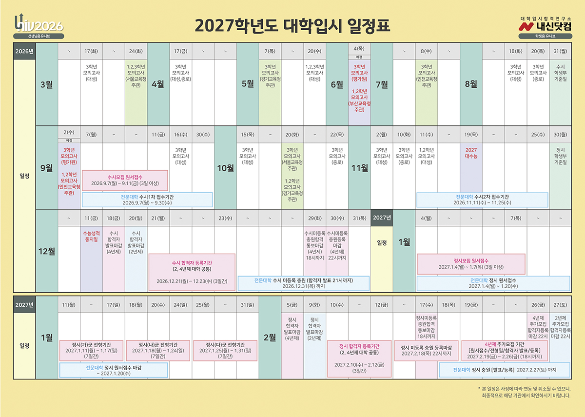 | 제목 | 2027학년도 입시일정 및 대학지도 |